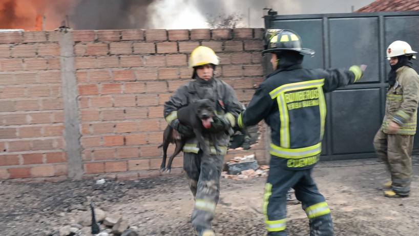 Durante la tarde, un depósito con barriles de aceite ubicado en el barrio Ampliación Policial 4 se vio envuelto en llamas, provocando pánico entre los residentes de la zona. Las altas temperaturas y el material inflamable ocasionaron explosiones que alcanzaron viviendas cercanas y un vehículo, mientras que una persona resultó herida y recibió atención médica inmediata. Entre los rescates, los bomberos lograron salvar a un perro atrapado por el fuego.