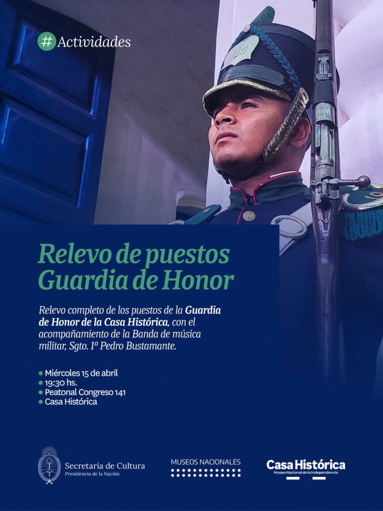 Este miércoles 15 de abril se realizará un nuevo relevo de la Guardia de Honor en la Casa Histórica de la Independencia, con la participación de una banda militar y entrada libre para el público.